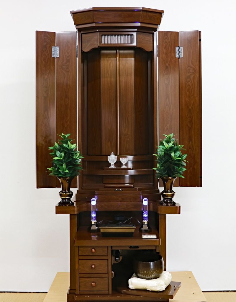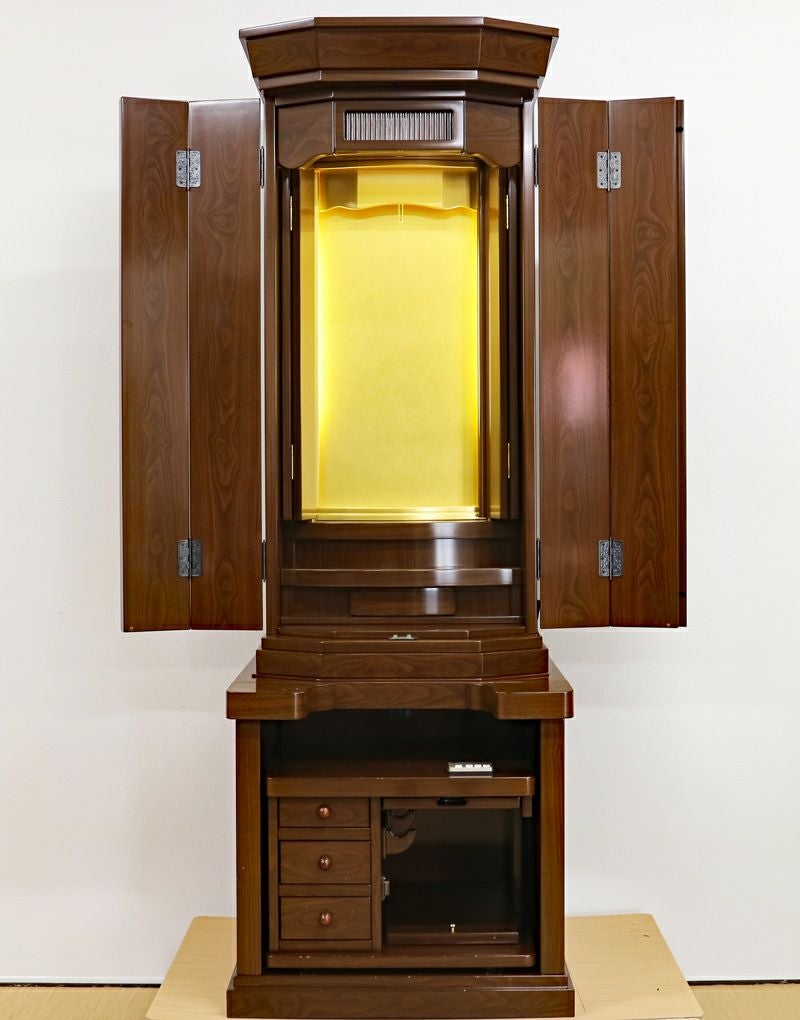 お厨子上部だけでなく、両脇にも蛍光灯照明が設置されている彩光厨子が採用されておりますので、ご本尊様を明るく拝すことができます。