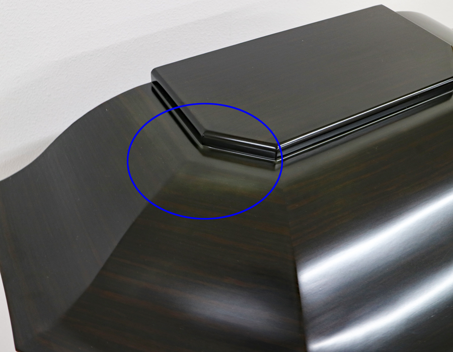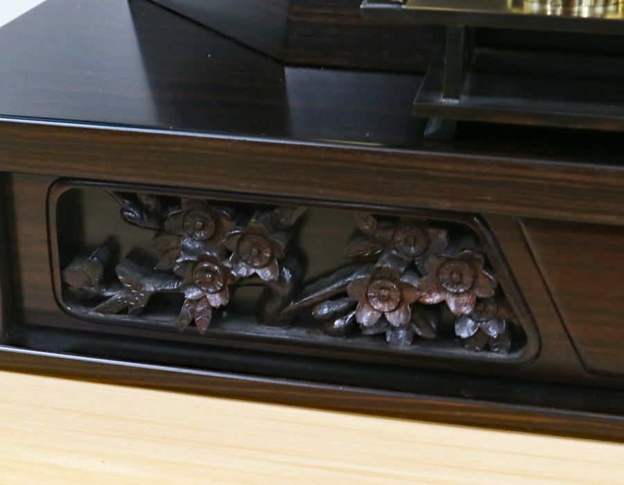 黒檀の無垢板をふんだんに使用して、桜模様の彫りを立体的に仕上げております。