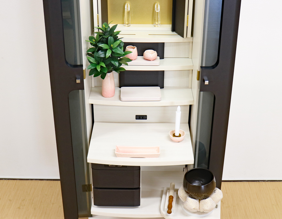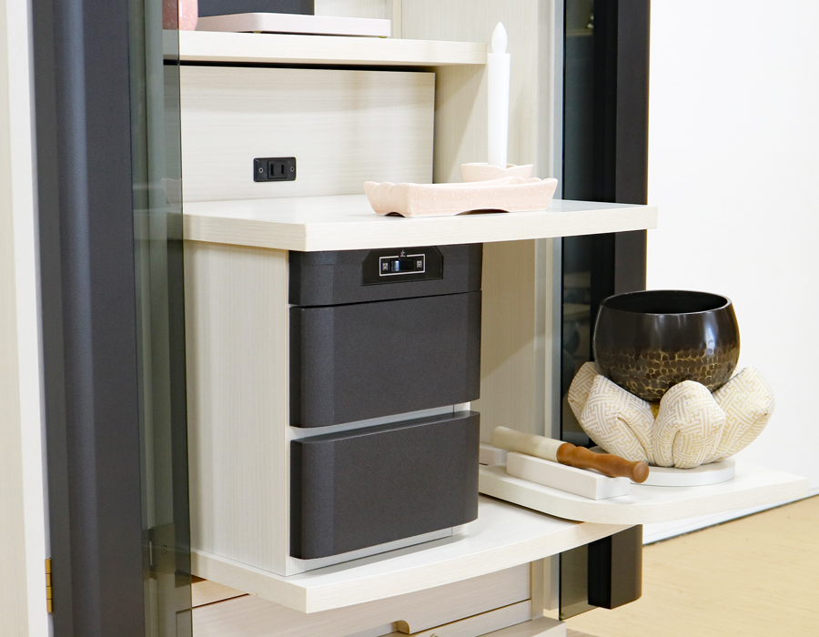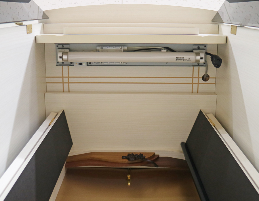 内部には蛍光灯照明も付属していますのでご本尊様を明るく照らしてくれます。