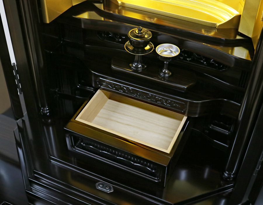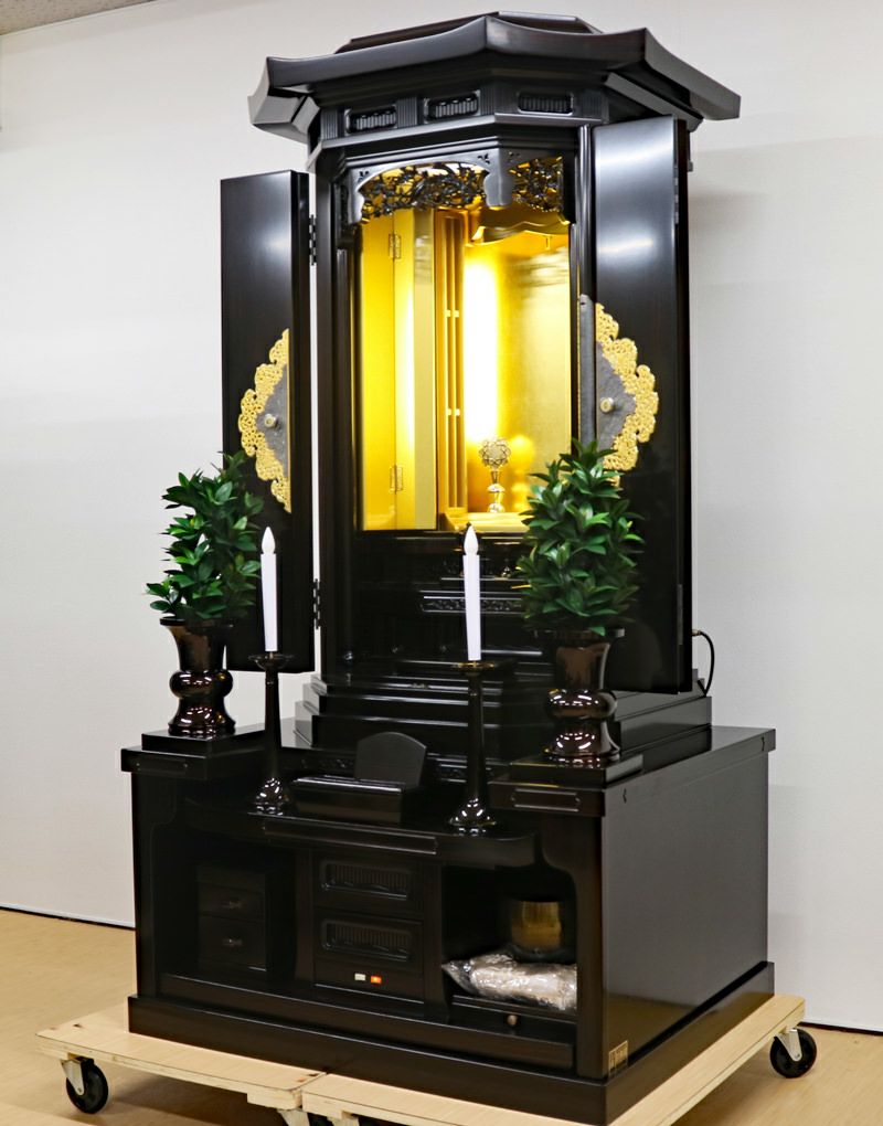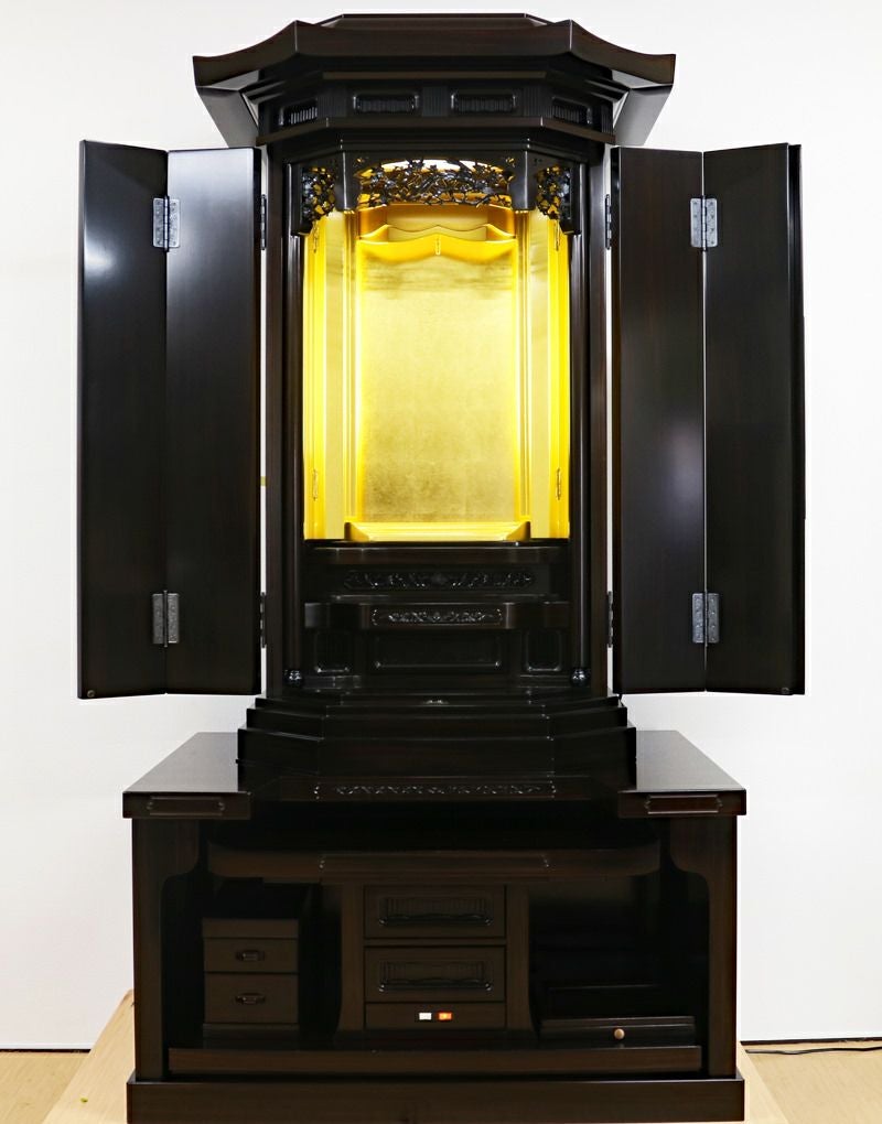仏壇内上部に6w照明・厨子内両脇に15w照明が設置されております。