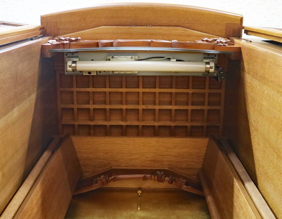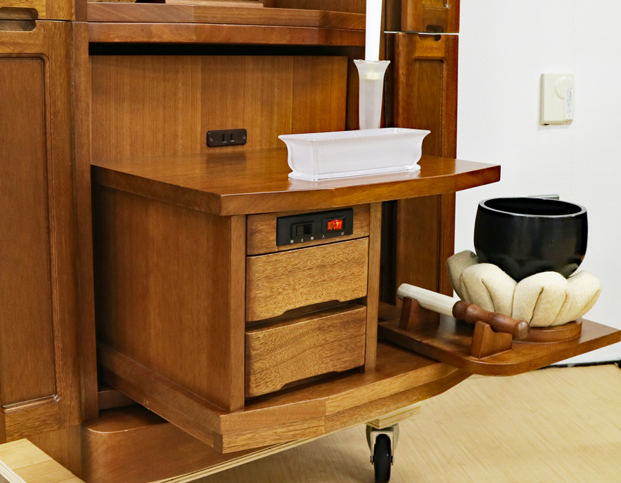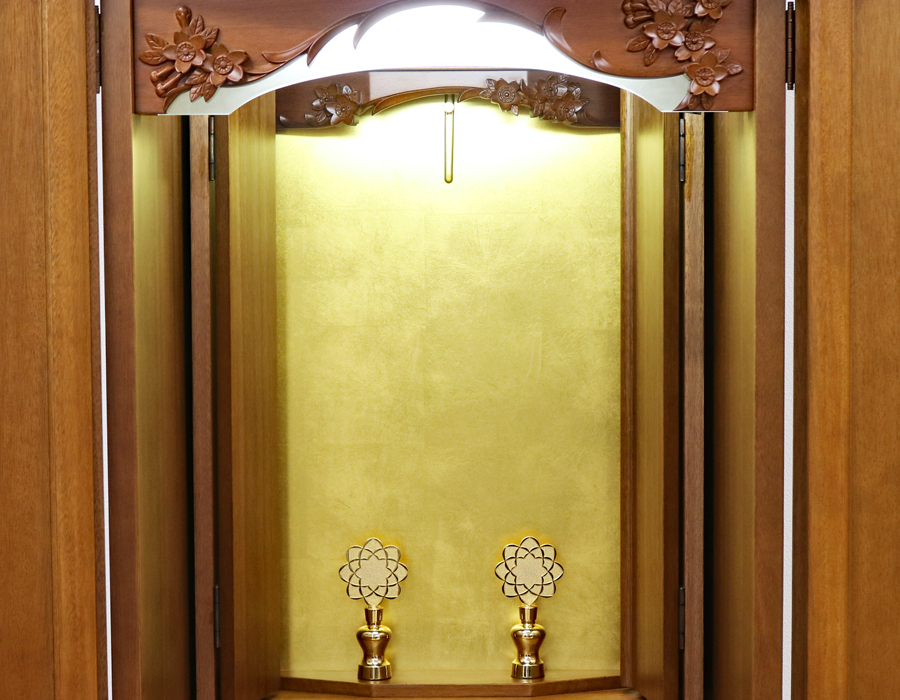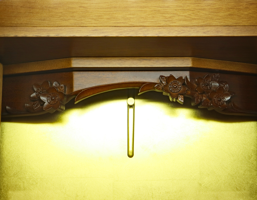 内部には蛍光灯照明も付属していますのでご本尊様を明るく照らしてくれます。