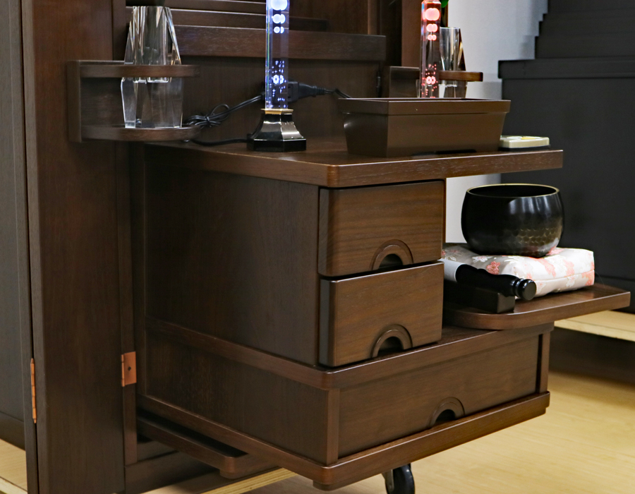 収納経机に専用花台が設置されております。