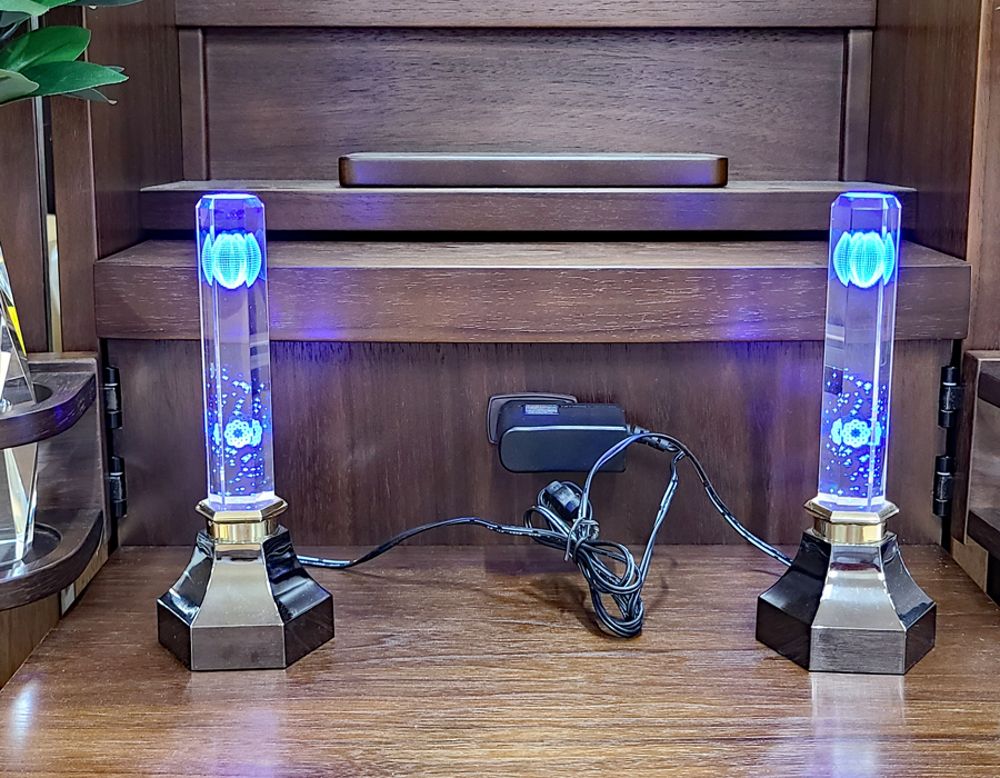 付属仏具のクリスタルキャンドルですが、上記お写真のクリスタルキャンドルに変更になりました。