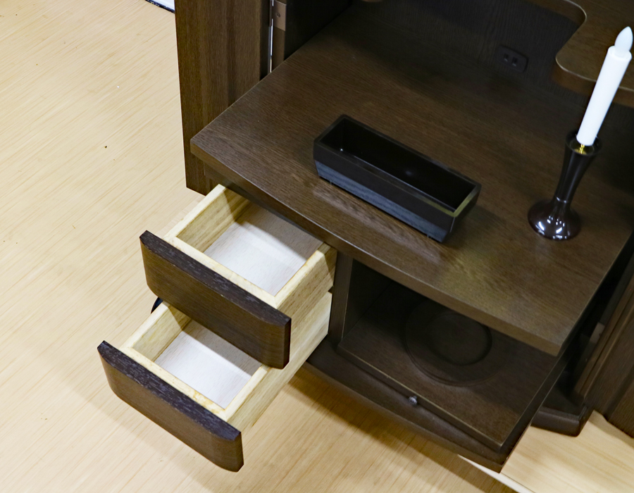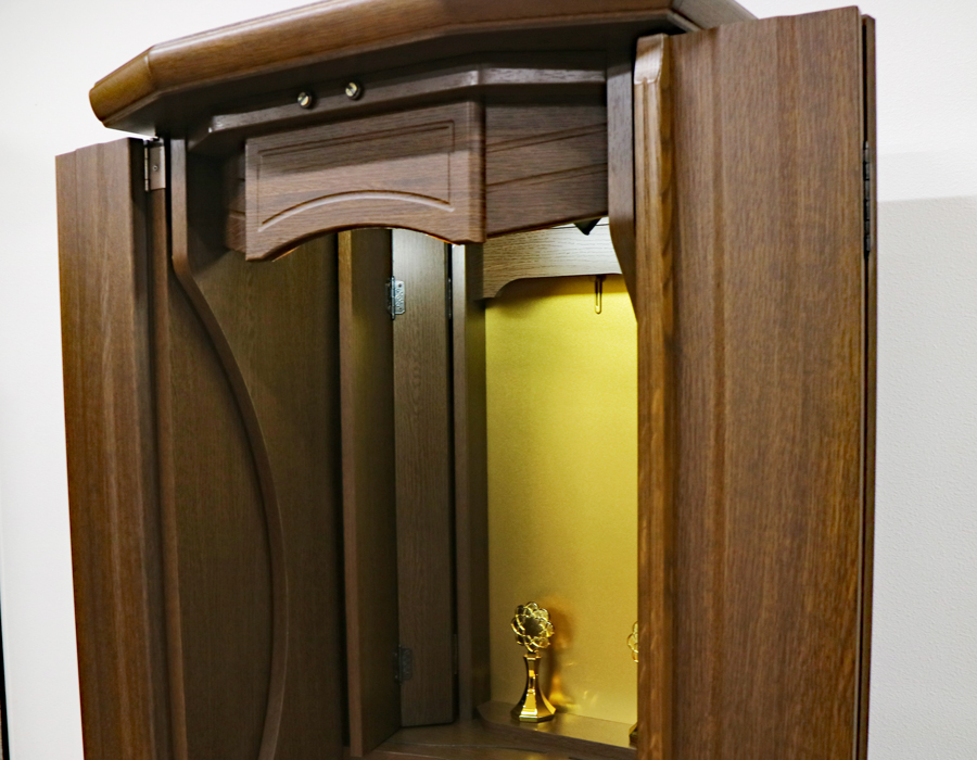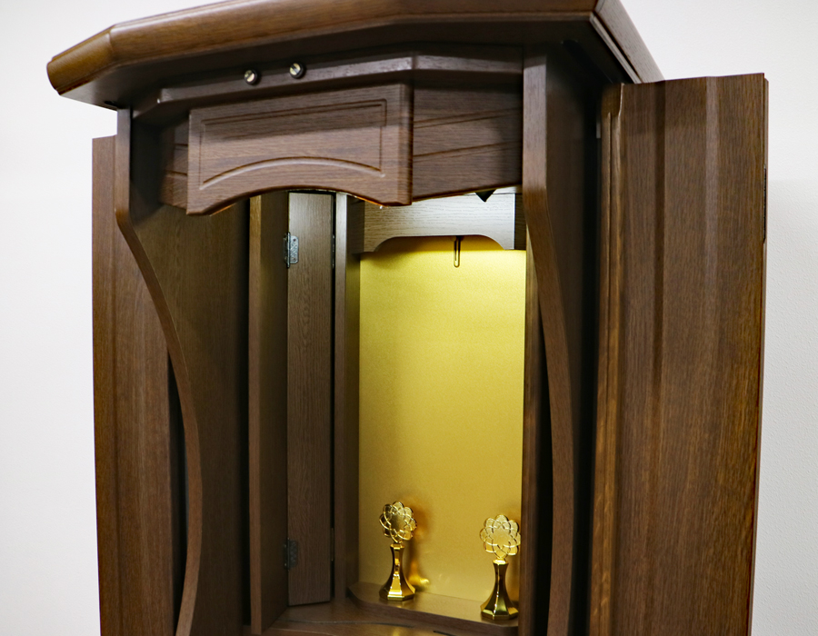 大戸は押し込み式の大戸を採用しておりますので、押し込むことによって視野が広がり斜めからでもご本尊様を拝すことができます。