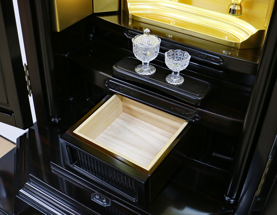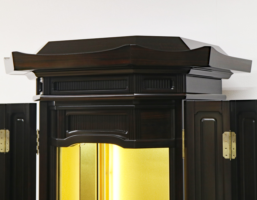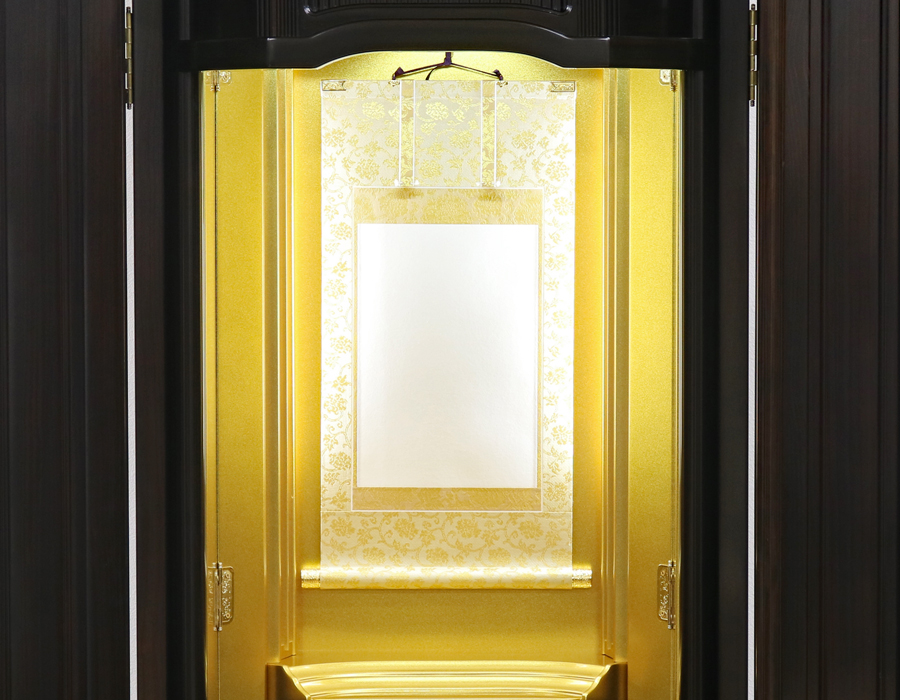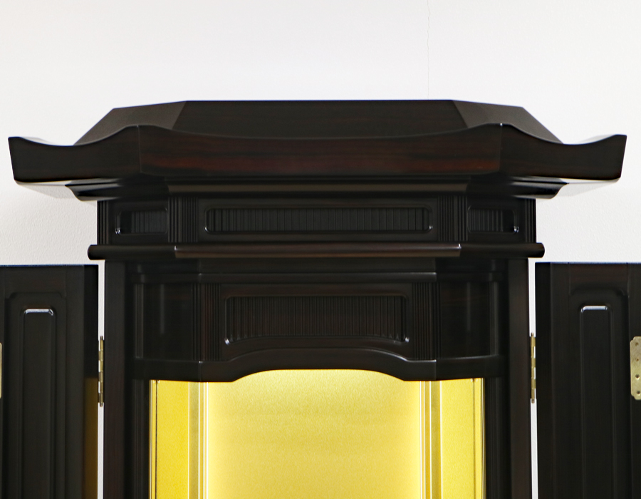 お厨子上部だけでなく、両脇にもLED照明がついている彩光厨子を採用しているので、御本尊様を明るく拝すことができます。