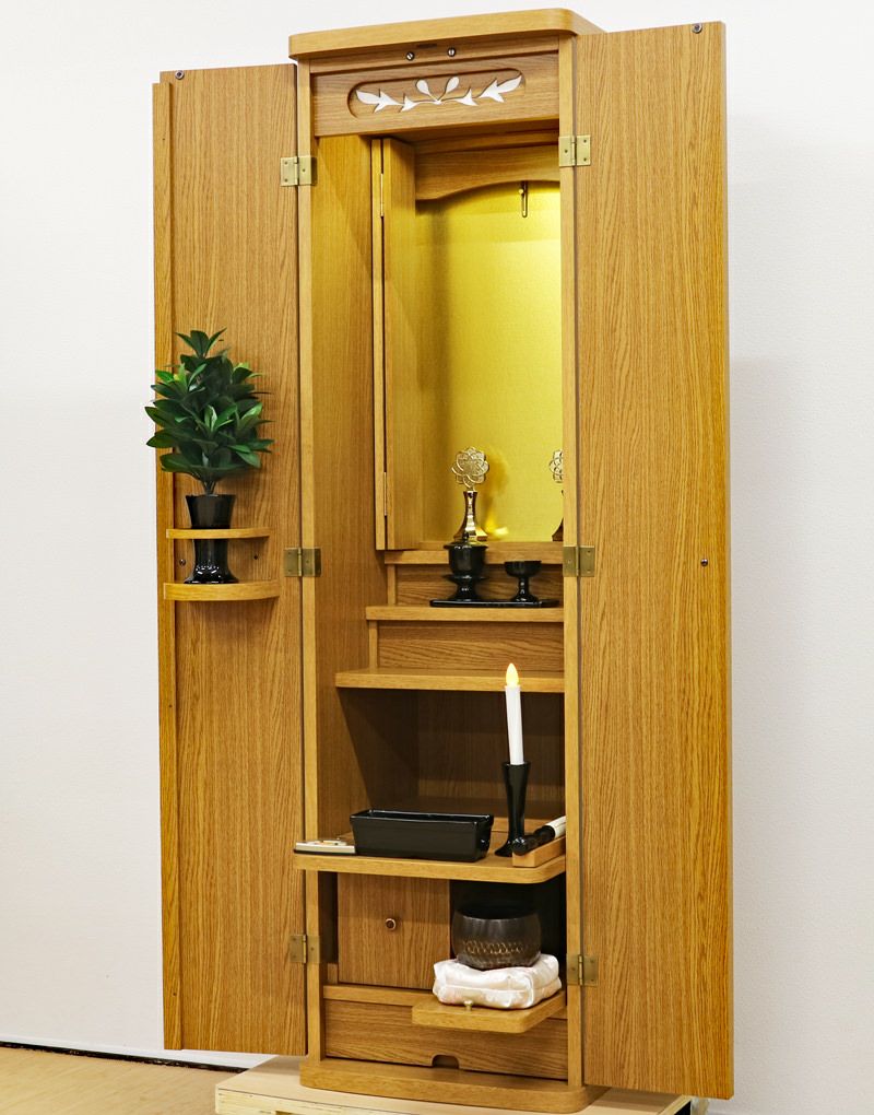 内部には蛍光灯照明も付属していますのでご本尊様を明るく照らしてくれます。
