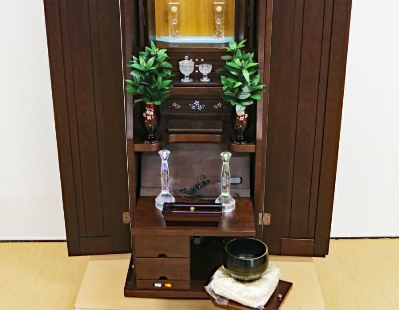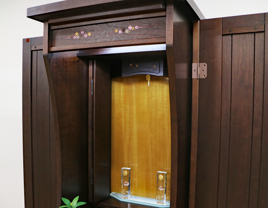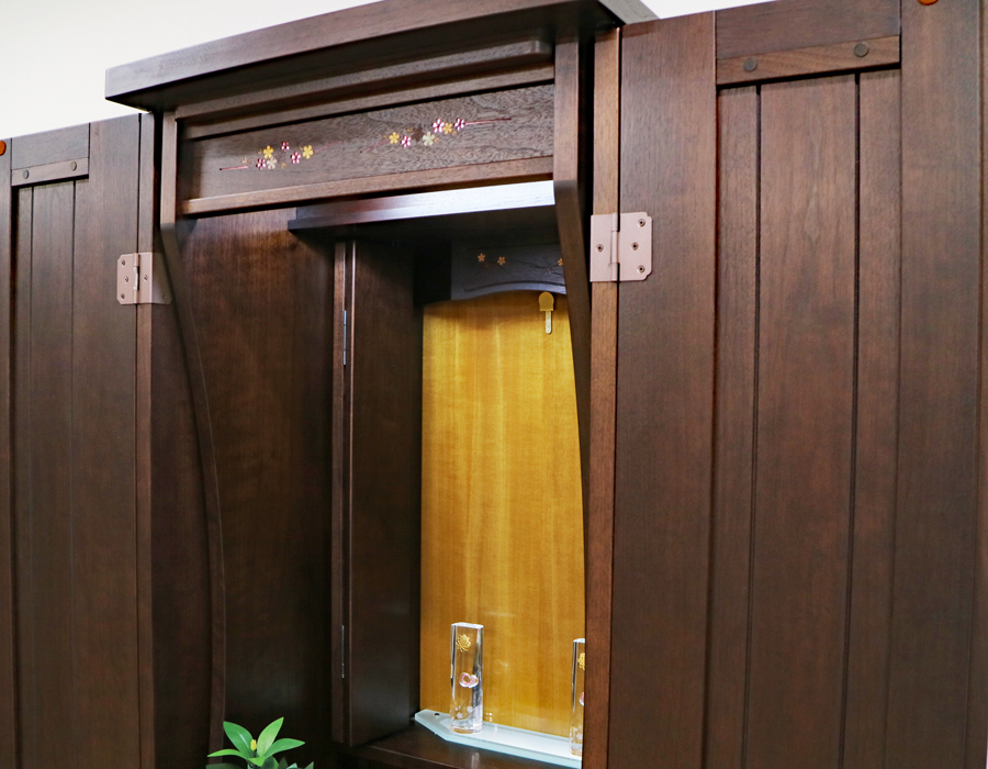 仏壇製造で有名な徳島県産のウォールナット材をふんだんに使用した中古家具調仏壇になります。