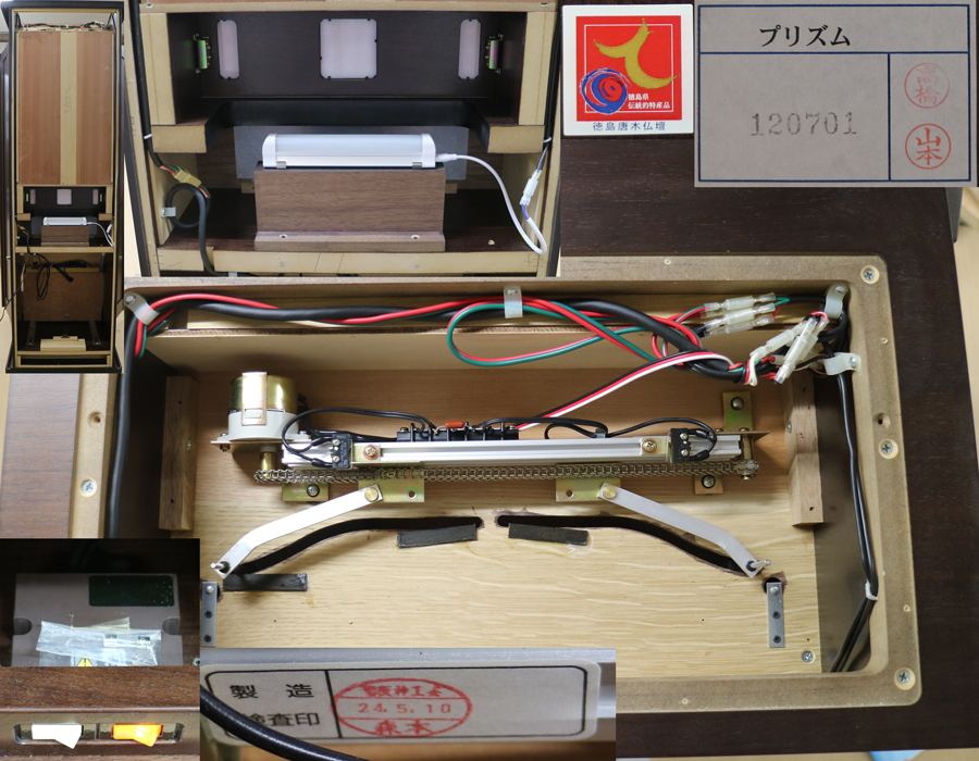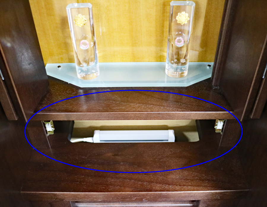 仏壇内上部に1か所、厨子下に1か所LED照明が設置されております。