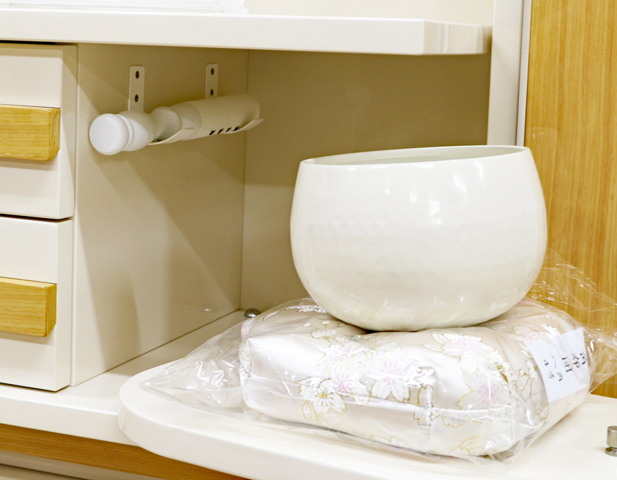 仏具付きを選択の場合は、上記お写真の白のリンとリン棒が付属いたします。