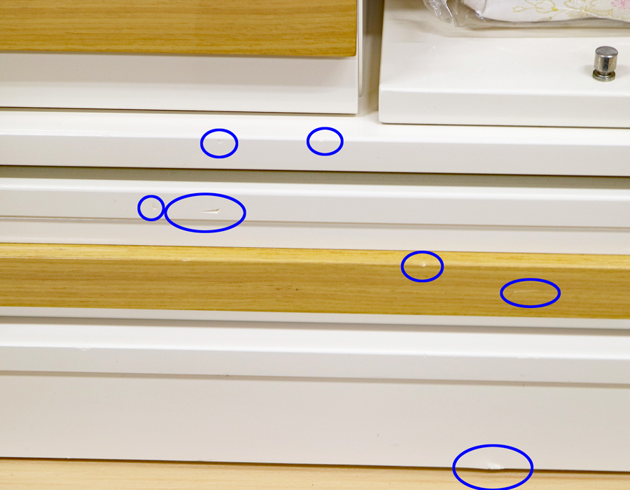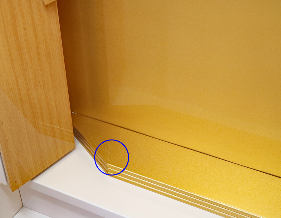 お上記お写真の青丸の箇所(お仏壇下部)に小さなうち傷が複数ございます。