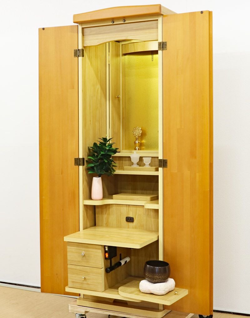 内部には照明も付属していますのでご本尊様を明るく照らしてくれます。