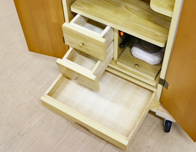 仏壇側面最下部の剥がれ(着色補修済み)等ございますためB級仏壇として格安にてご提供させていただきます。