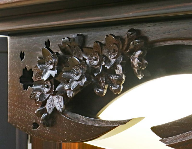 黒檀の無垢板をふんだんに使用して、桜模様の彫りを立体的に仕上げております。