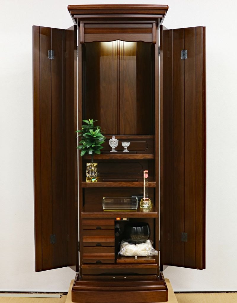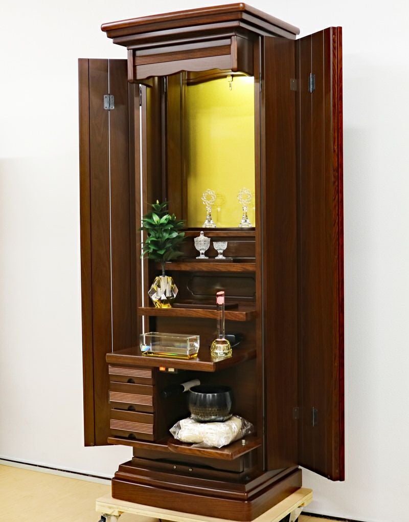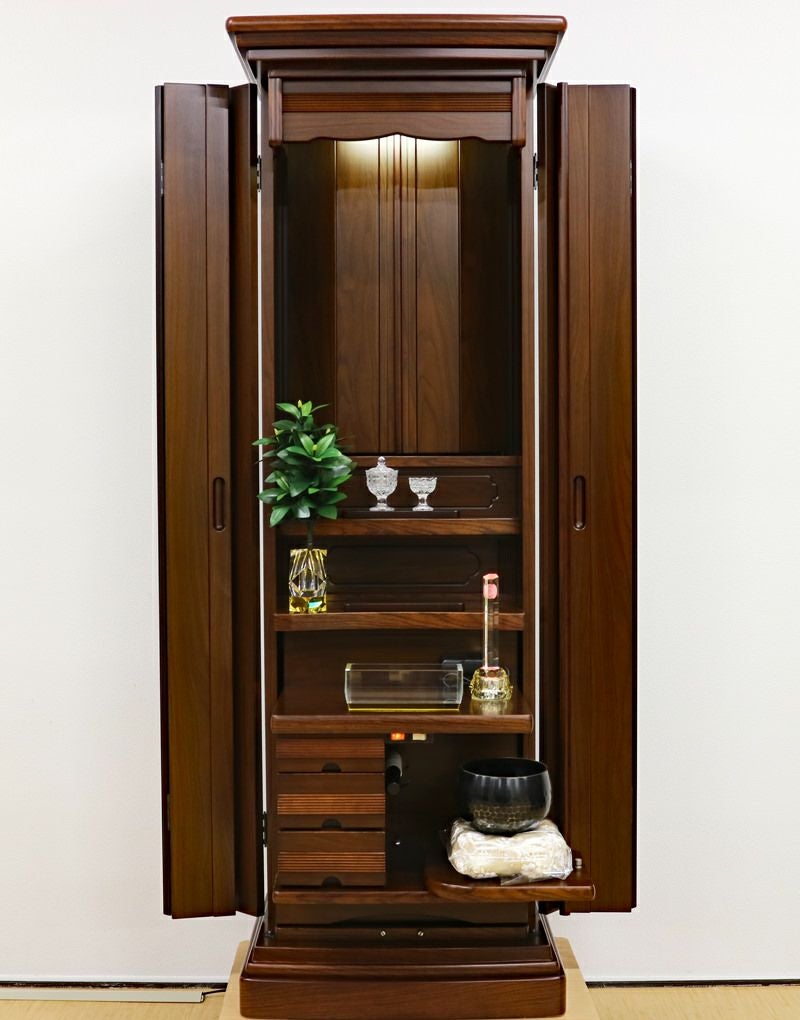 仏壇製造で有名な徳島県産のウォールナット材をふんだんに使用した中古家具調仏壇になります。