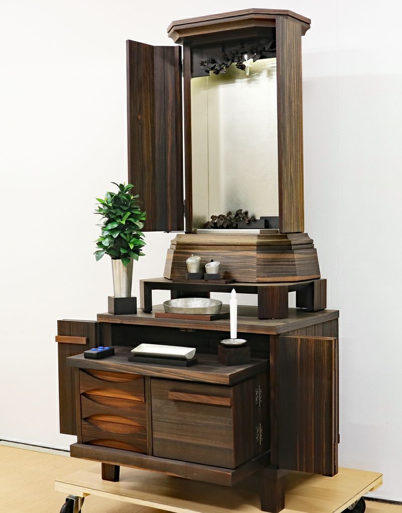 現在金剛堂さんにて新品価格825,570円販売中の仏壇「13本黒檀EBIZURU+下台」の旧バージョンの中古仏壇です。