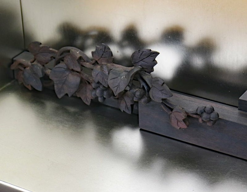 厨子内の欄間と下部に対象的に配置されたエビズルの彫はとても繊細的なデザインに仕上がっております。