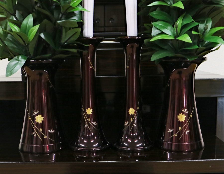 天目・三宝・銅器仏具セット(灯立×2・花立×2・香炉)・リン
