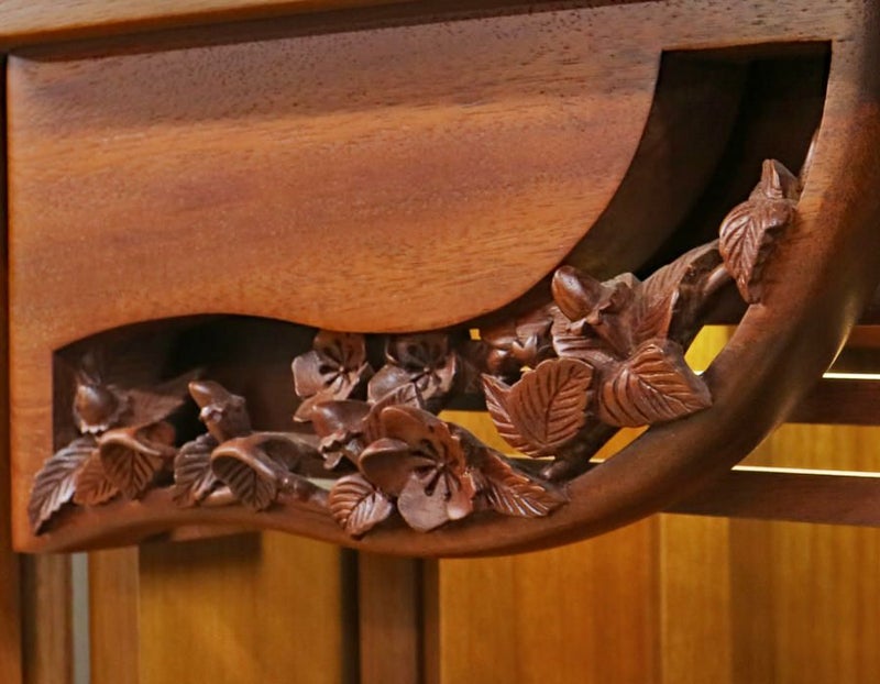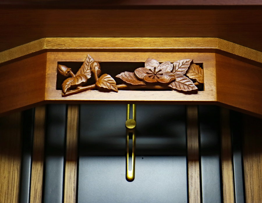 厨子内上部にも洗練されたやまぶきの彫刻がデザインされております。