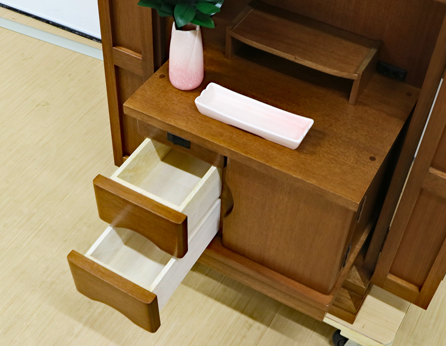 収納経机にに引き出しが2箇所ございます。
