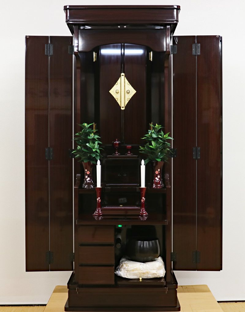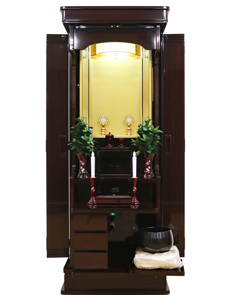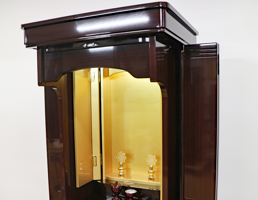 仏壇内には、2箇所LED照明が設置されておりますので、ご本尊様をより明るく拝すことができます。