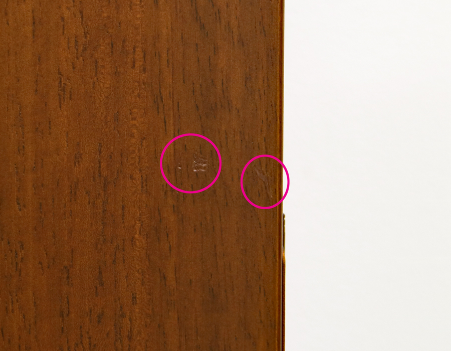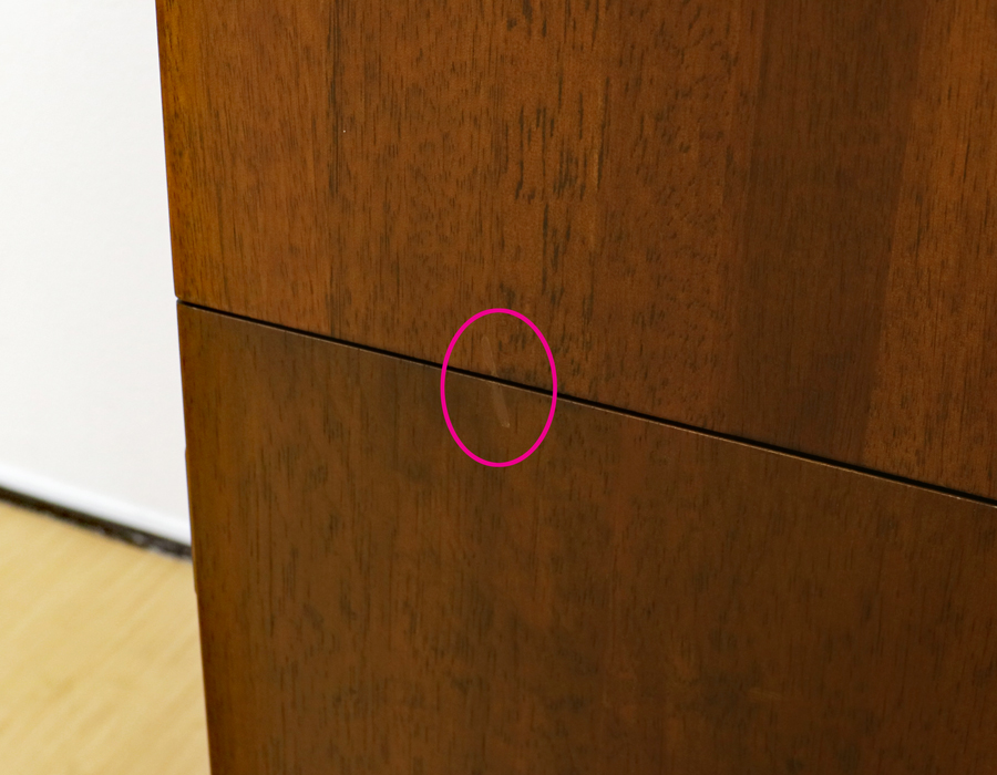 上記お写真の赤丸の箇所(お仏壇向こう正面右側)に小さな傷がございましたので、着色補修いたしました。