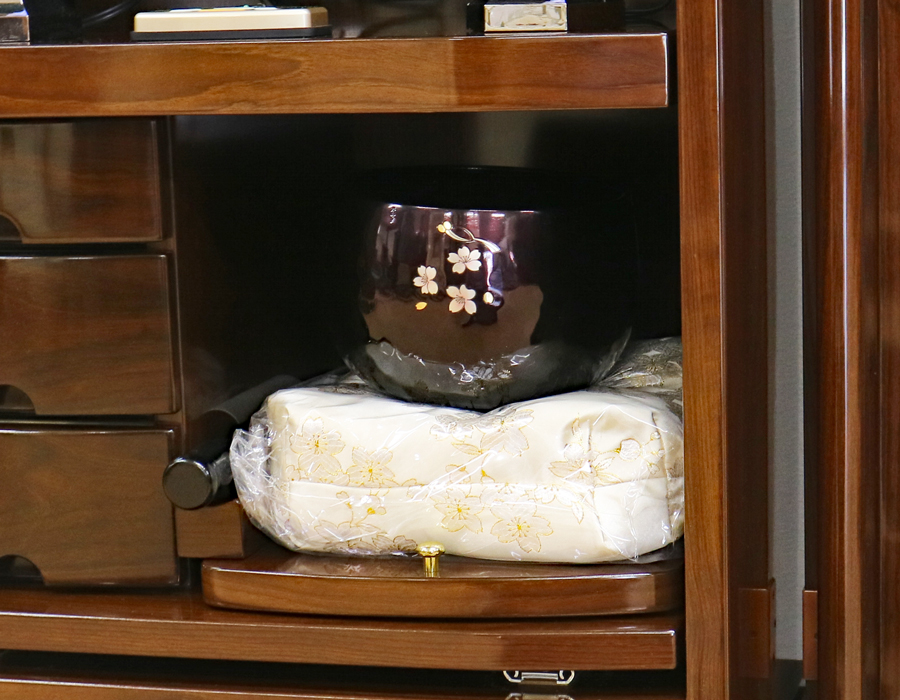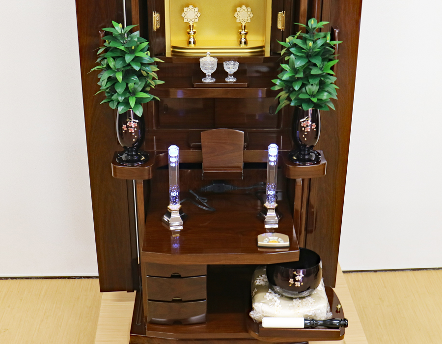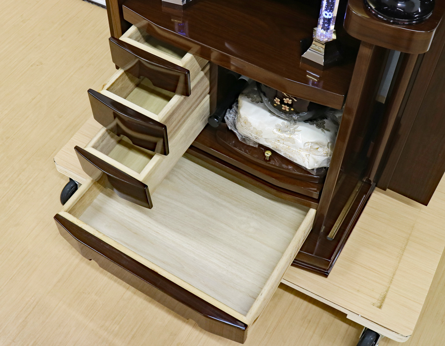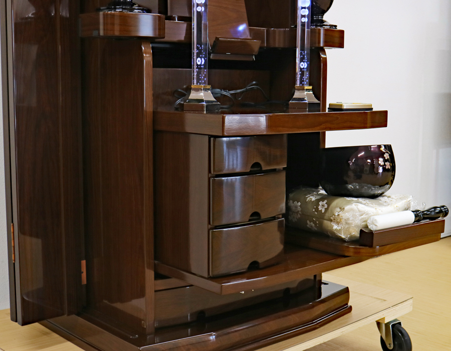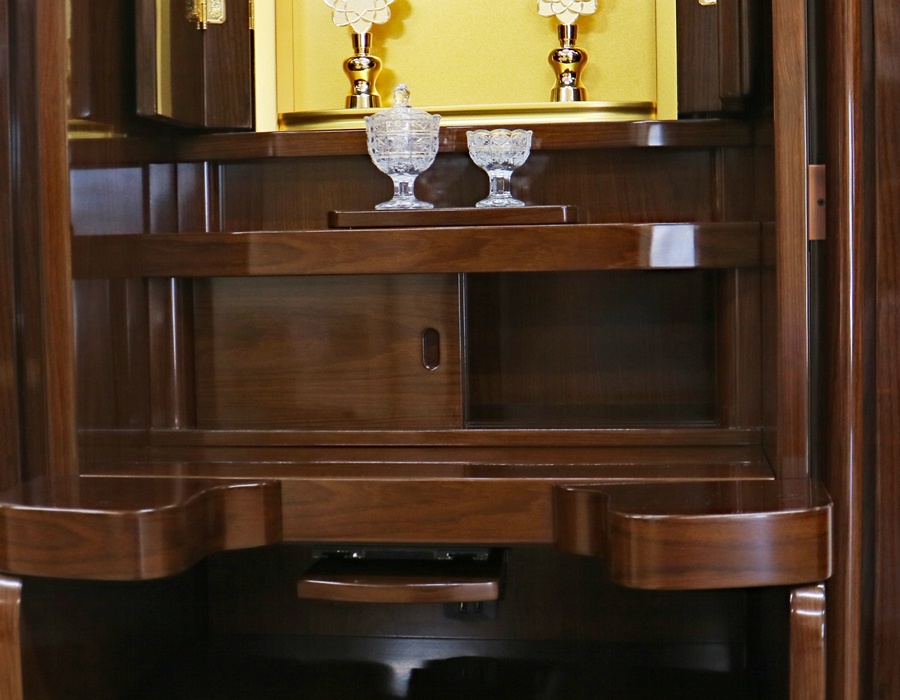 収納経机上には収納式の過去帳台がお仏壇に設置されております。