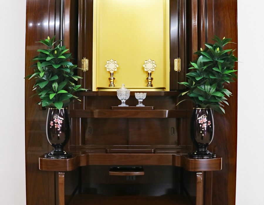 おシキミの花瓶の台は横にスライドしますので、 勤行の時にはご本尊様がよりすっきりとみることができます。