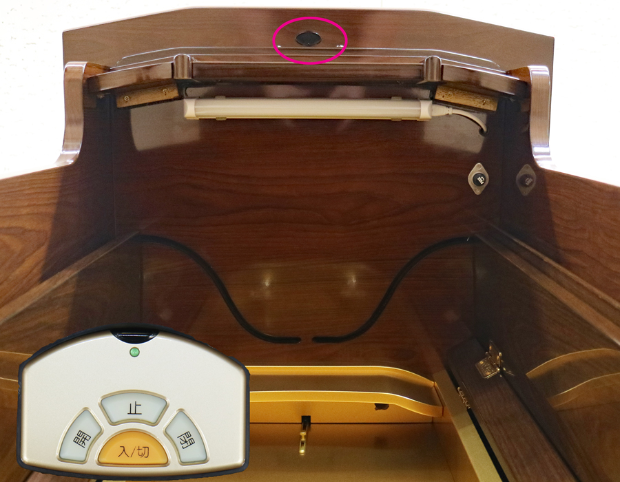 上記お写真の赤丸の箇所にリモコン受信機がございます。