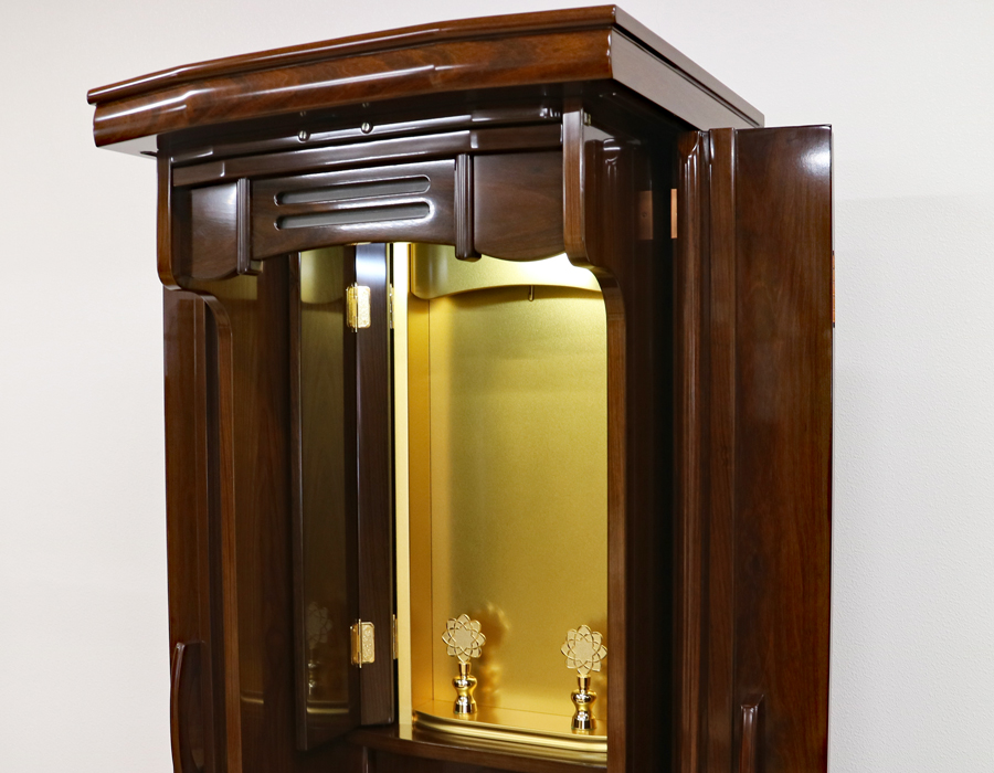 三方開き式の大戸ですので、大戸を全部開くことによって斜めからでもご本尊様を拝すことができます。