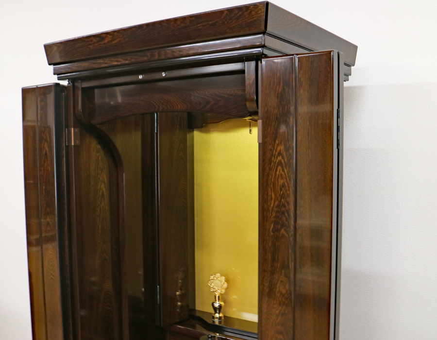 三方開き式の大戸ですので、大戸を全部開くことによって斜めからでもご本尊様を拝すことができます。