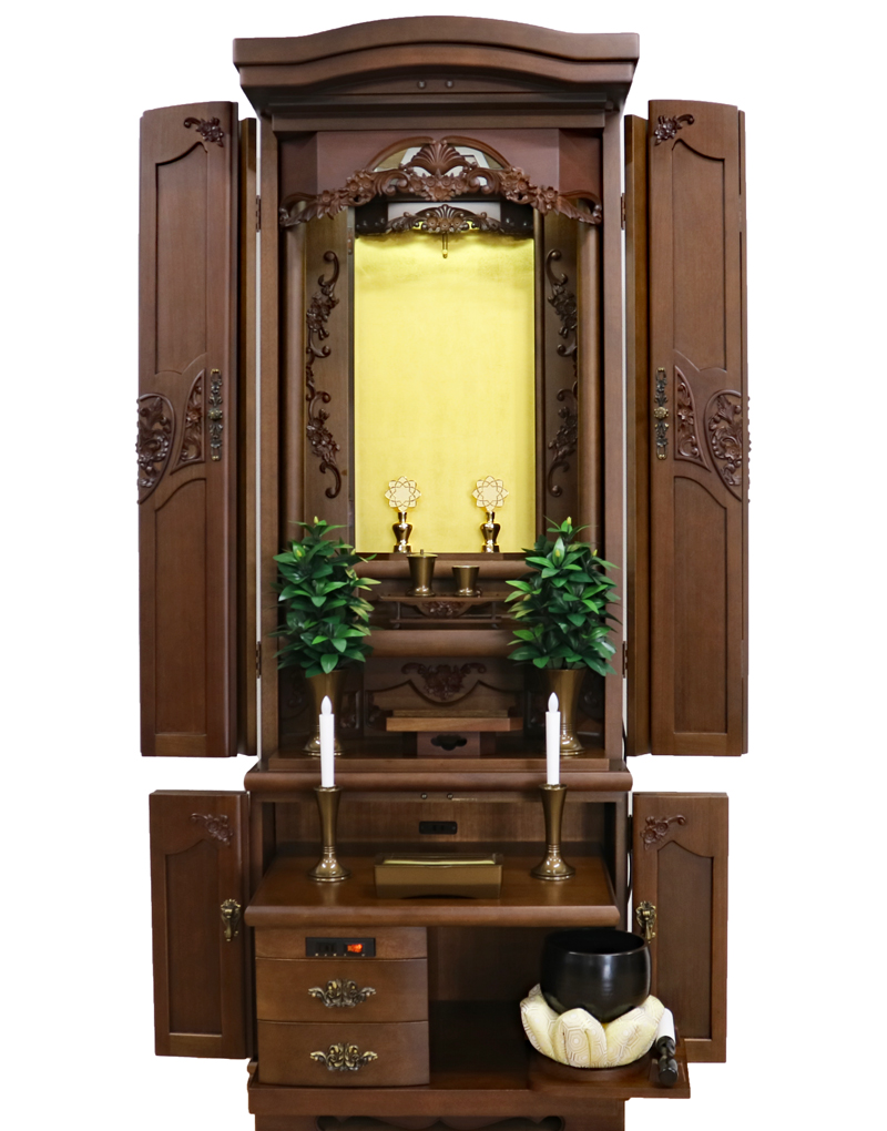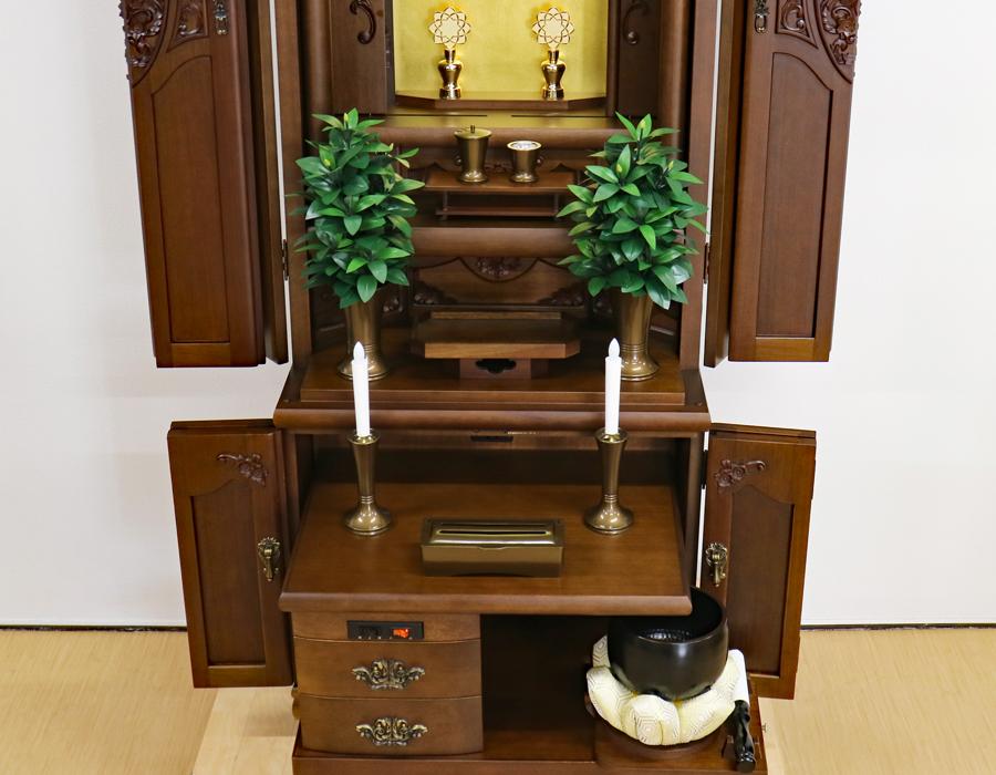 内部には蛍光灯照明も付属していますのでご本尊様を明るく照らしてくれます。