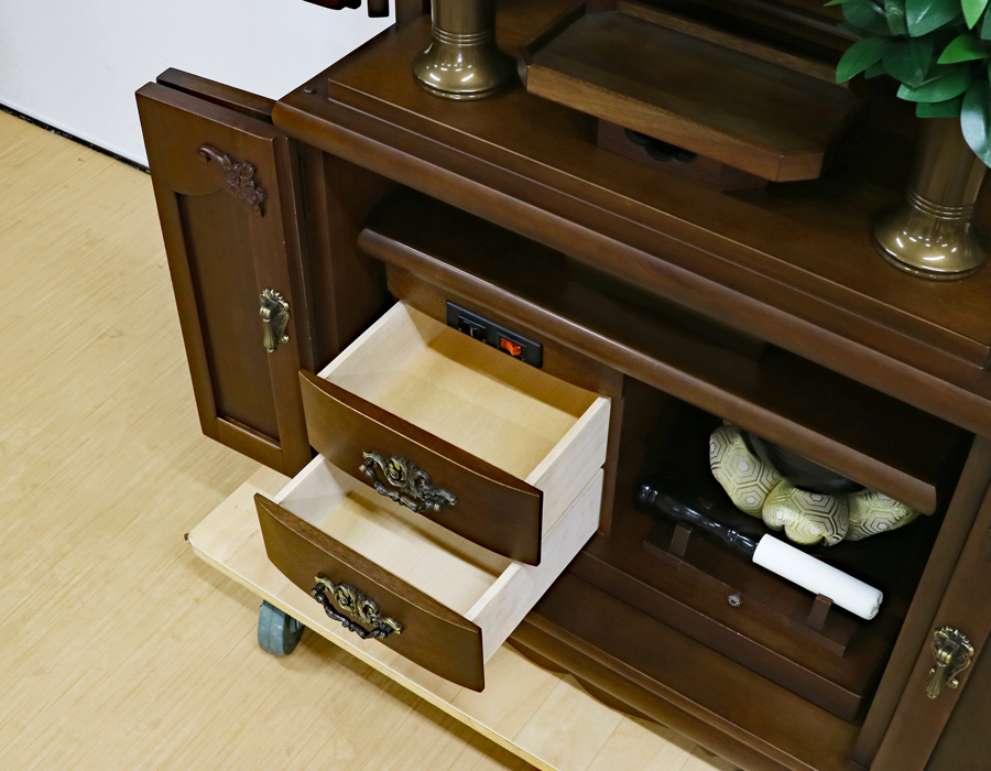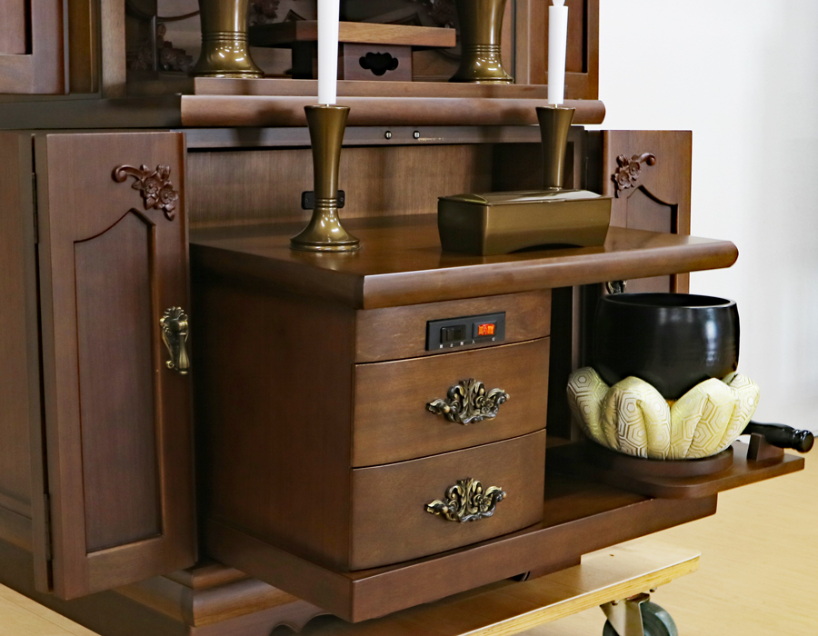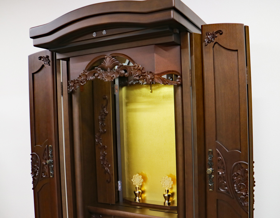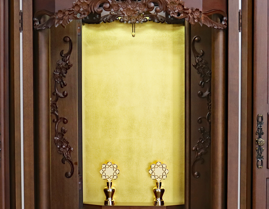 大戸は、三方開きにすることができ、お厨子の視野が広がり斜めからでもご本尊様を拝すことができます。