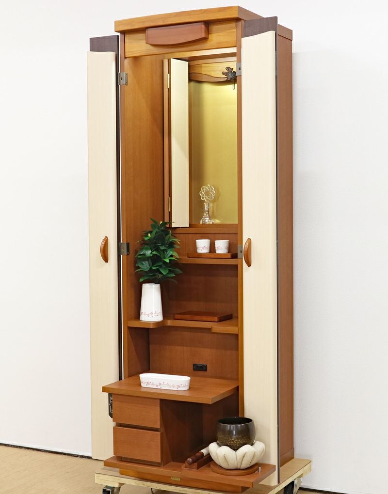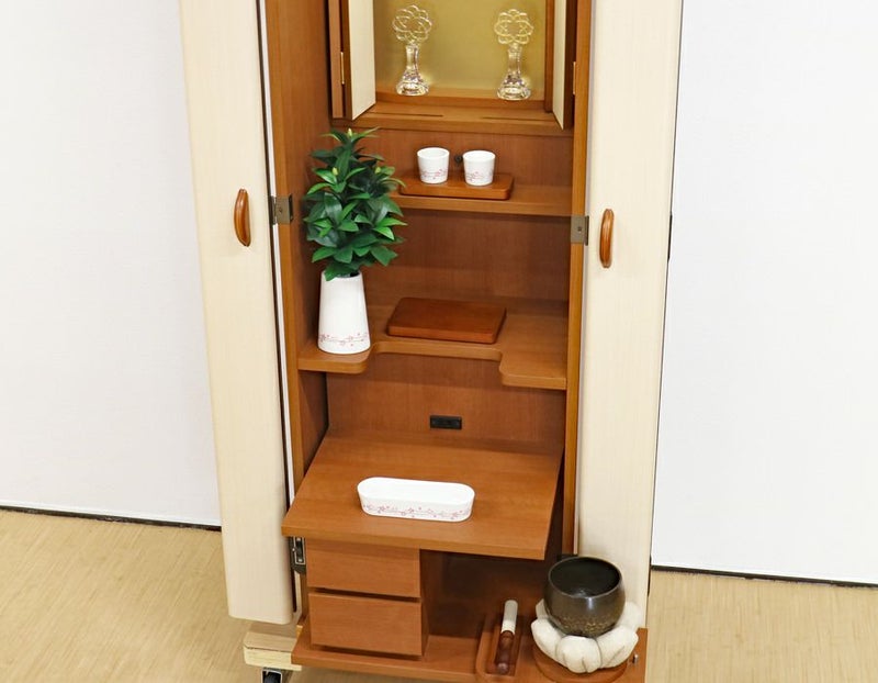 現在も金剛堂さんにて仏具付価格214,710円にて販売中の1473メープルウッドの中古仏壇です。 ツートンカラーのおしゃれなデザインとなっております。状態がよく優良中古仏壇です。 お買い得価格でご提供致します。 ご不明点があればLINEでお気軽にお問い合わせくださいませ。