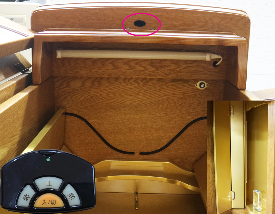 上記お写真の赤丸の箇所にリモコン受信機がございます。