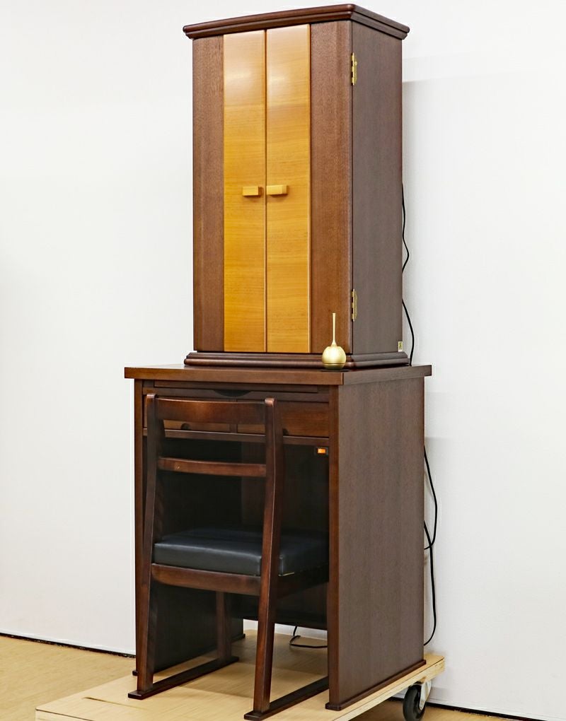 ツートンカラーのおしゃれなデザインのイス付きの中古仏壇です。