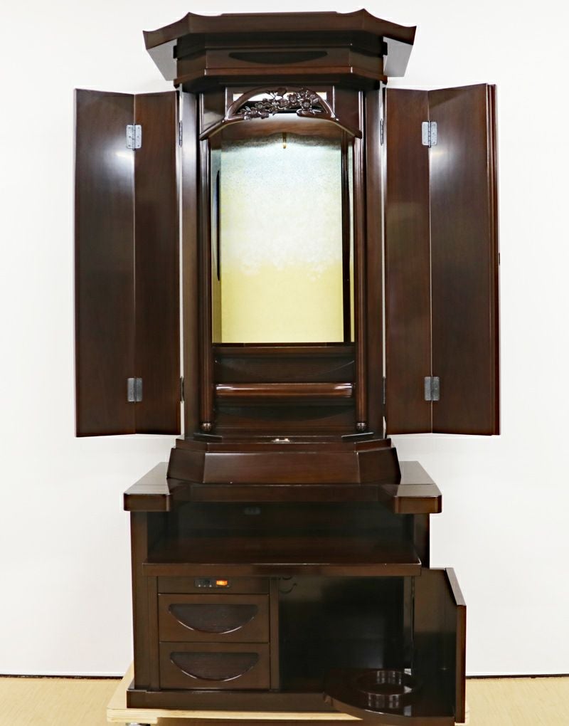 内部には蛍光灯照明も付属していますのでご本尊様を明るく照らしてくれます。