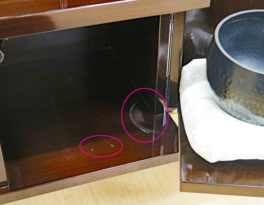 収納リン台下にネジ穴と擦り傷がございます。