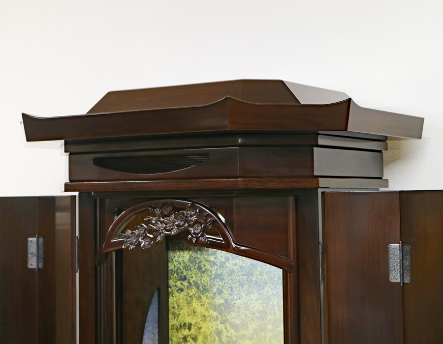 厨子扉には美しいすりガラスがデザインされております。