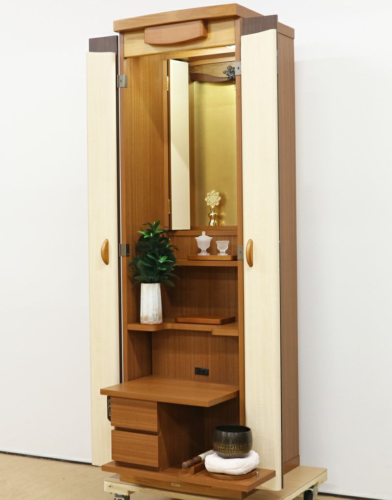 ツートンカラーのおしゃれなデザインとなっております。状態がよく優良中古仏壇です。 お買い得価格でご提供致します。 ご不明点があればLINEでお気軽にお問い合わせくださいませ。