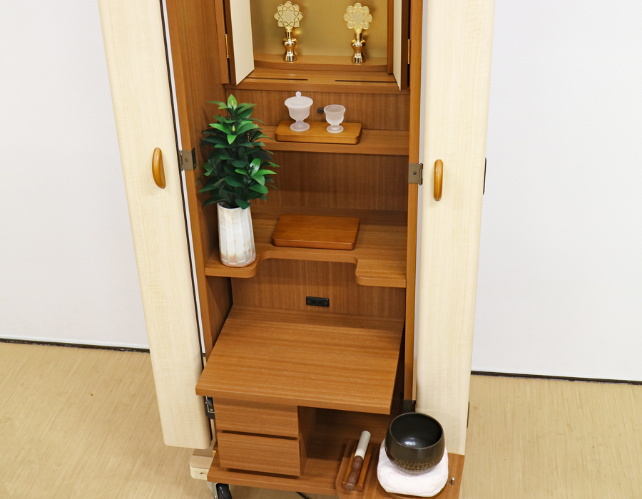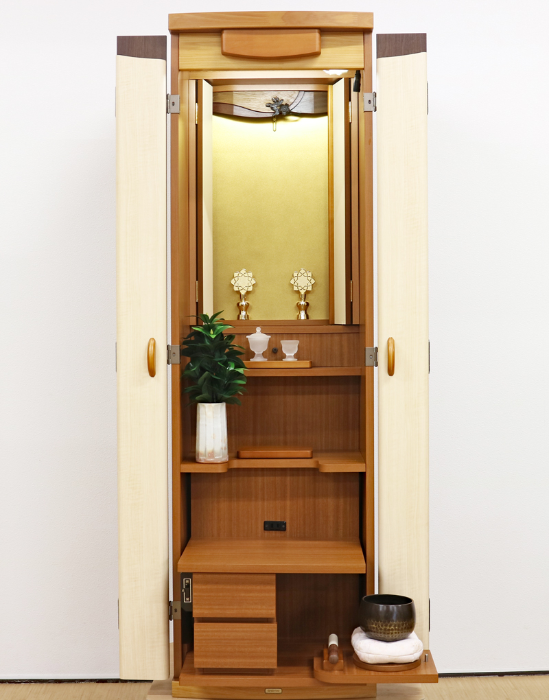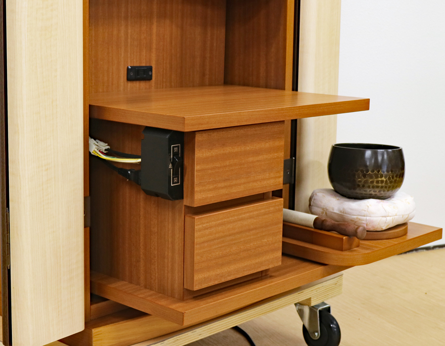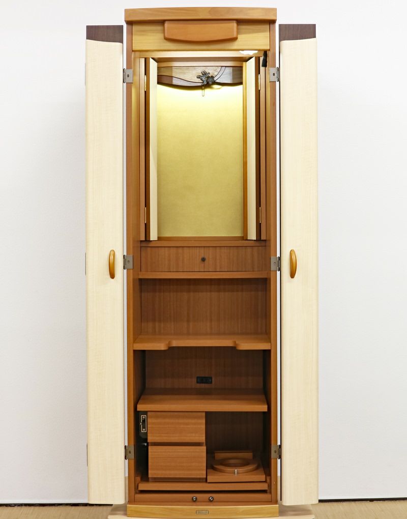 内部には蛍光灯照明も付属していますのでご本尊様を明るく照らしてくれます。