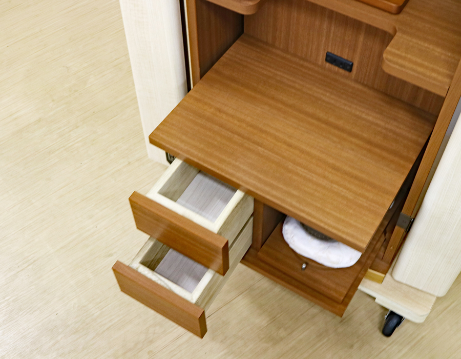 ご本尊様をご安置するための掛け金具は、回すことで上下に高さ調整できます。