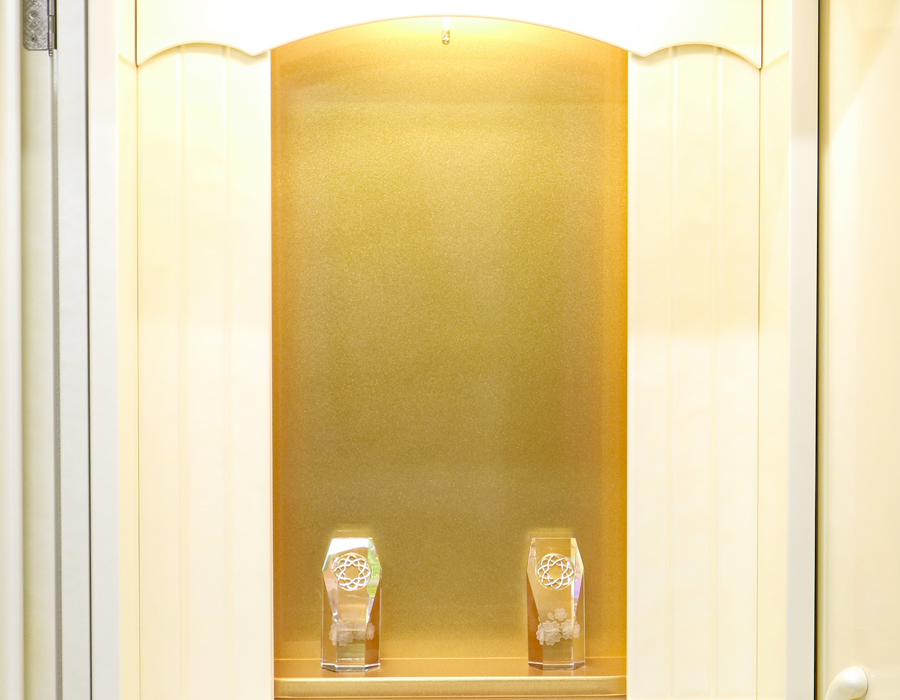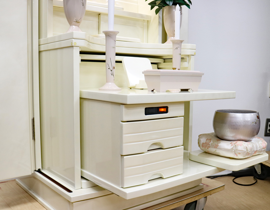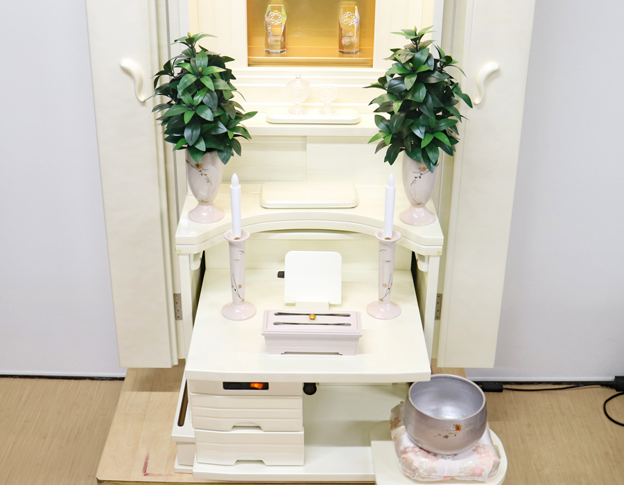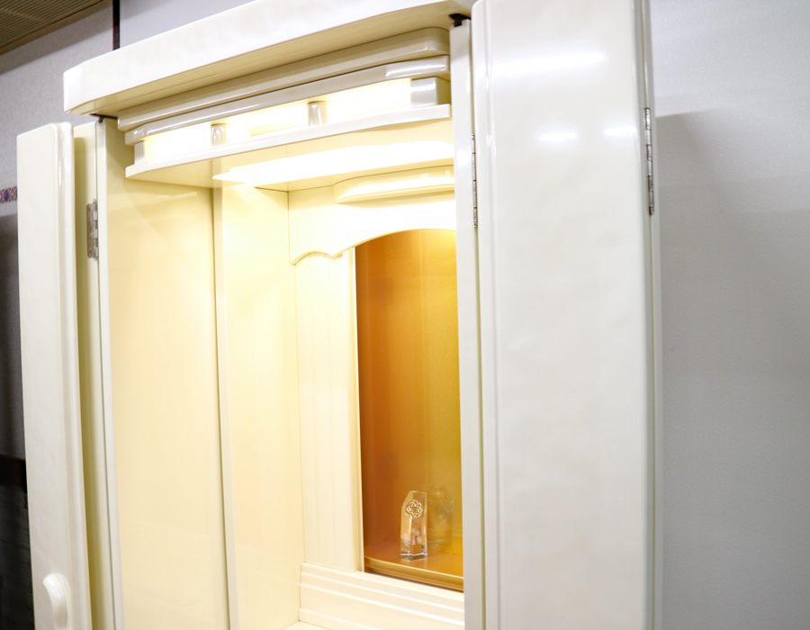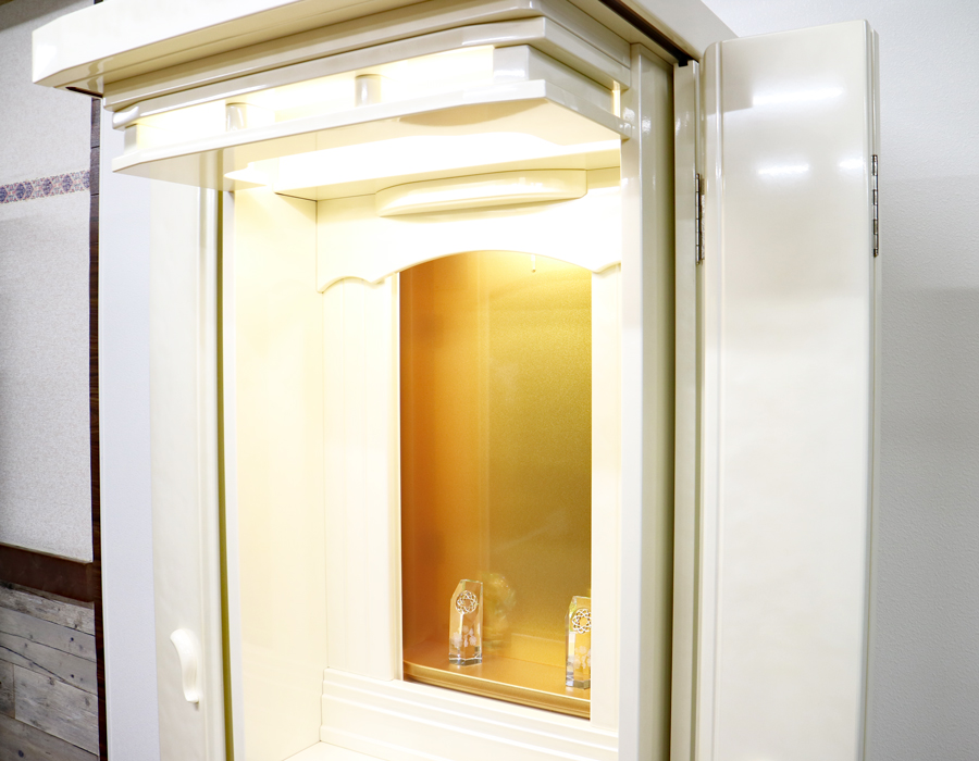 会場拠点用にお勧めできる荘厳で優雅な仏壇「遥・パールホワイト」です。