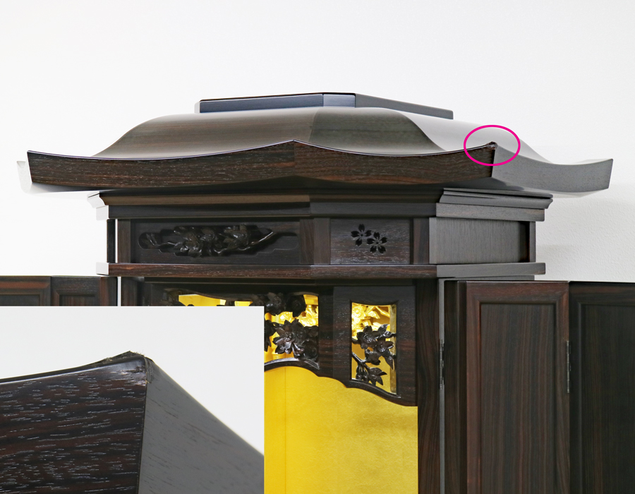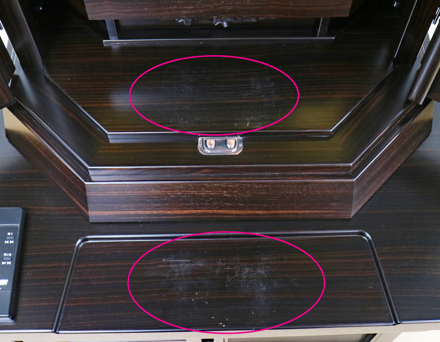 下台の上部に上記お写真の仏具による擦り傷がございます。