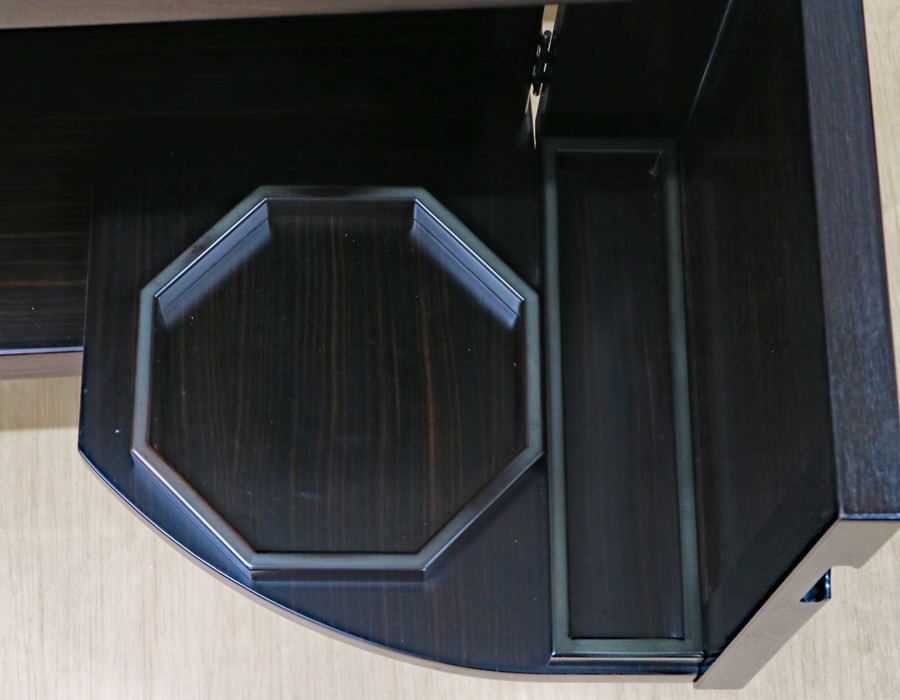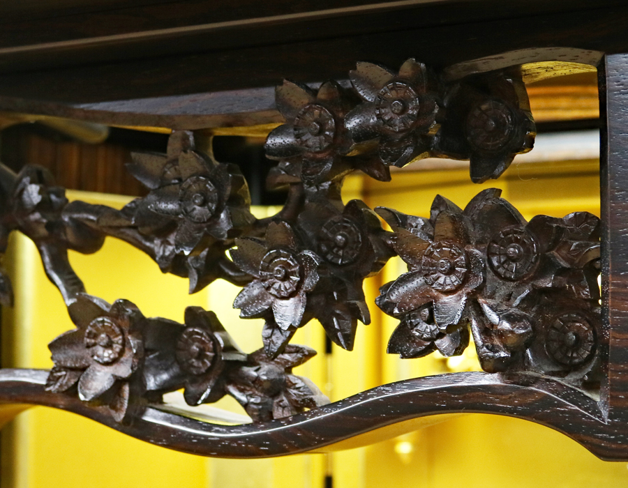 黒檀の無垢板をふんだんに使用して、桜模様の彫りを立体的に仕上げております。