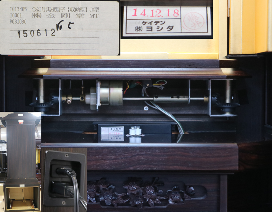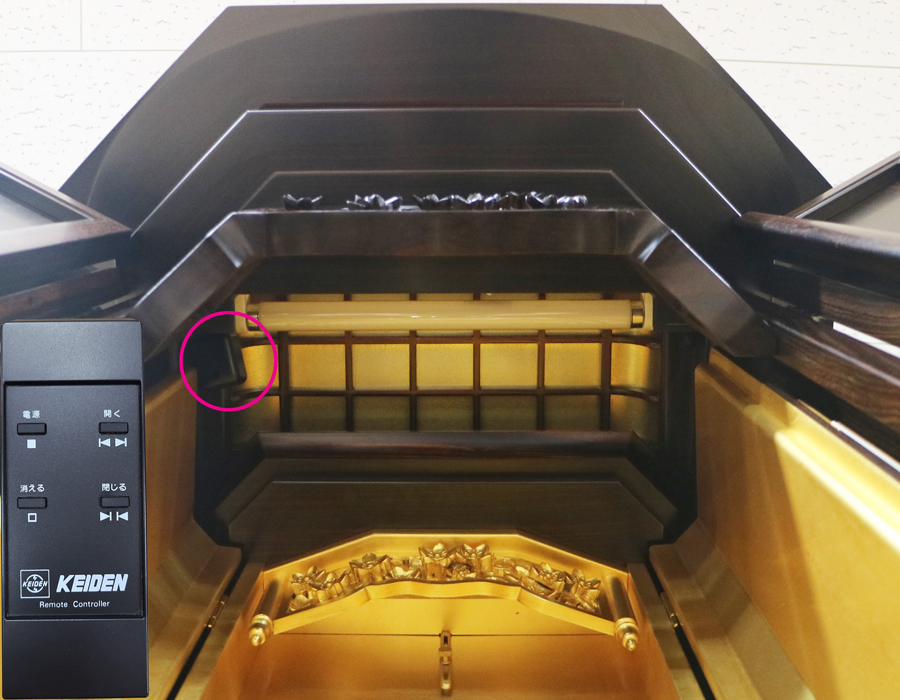 仏壇内上部には蛍光灯10w照明が設置されております。