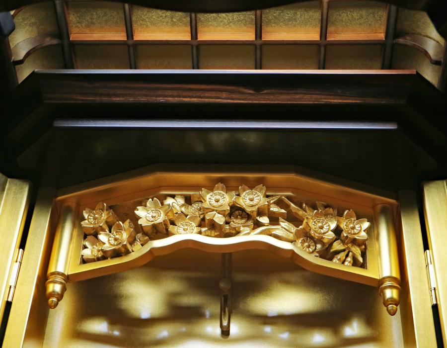 お厨子を開くと美しく本金箔を施した厨子板がご本尊様をさらに荘厳にしてくれます。