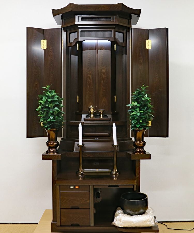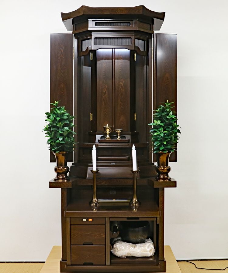 鉄刀木は「木のダイヤモンド」と称されるほど堅牢な素材です。その強靭な木目が語りかけてくるのは、表面的な美しさではありません。どんな嵐が来ようとも、厳然とわが家を守り抜くという「不動の本陣」としての風格です。この仏壇を前にしたお客様が、その圧倒的な存在感に思わず息を呑み、「これがわが家に来たら…」と背筋を正される姿を、私は何度も目にしてきました。