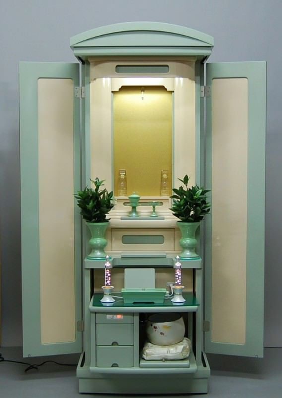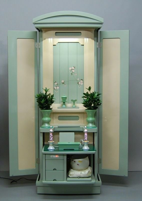 お厨子サイズ:高さ58cm:幅30cm 特装ご本尊様ご安置できます。自動開閉スイッチは経机に内蔵しています