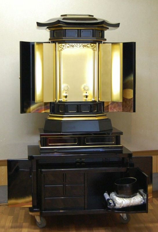 中々出てこない黒塗り厨子型収納仏壇です