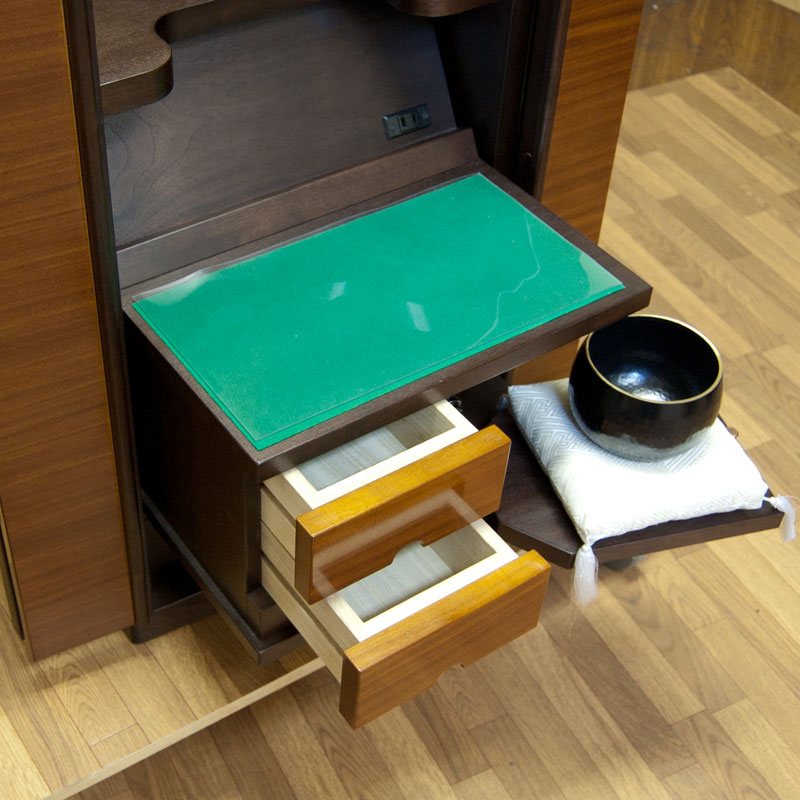 経机は収納式、コンパクトで大人気の家具調仏壇です。